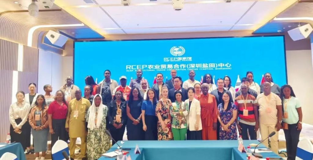 2025年9月9日,一带一路菲律宾、蒙古等八国参访团及深领科CEO易丽莎一行莅临RCEP国家馆参观考察,深圳中农经贸供应链有限公司外事商务部主任徐宁泽,常务主任刘建周,战略发展总监邹林玲热情接待。此次访问聚焦“一带一路”倡议与RCEP机制协同背景下的经贸合作及产业互联,旨在共同探索高水平对外开放新路径,构建双向赋能、资源共享的合作新格局。